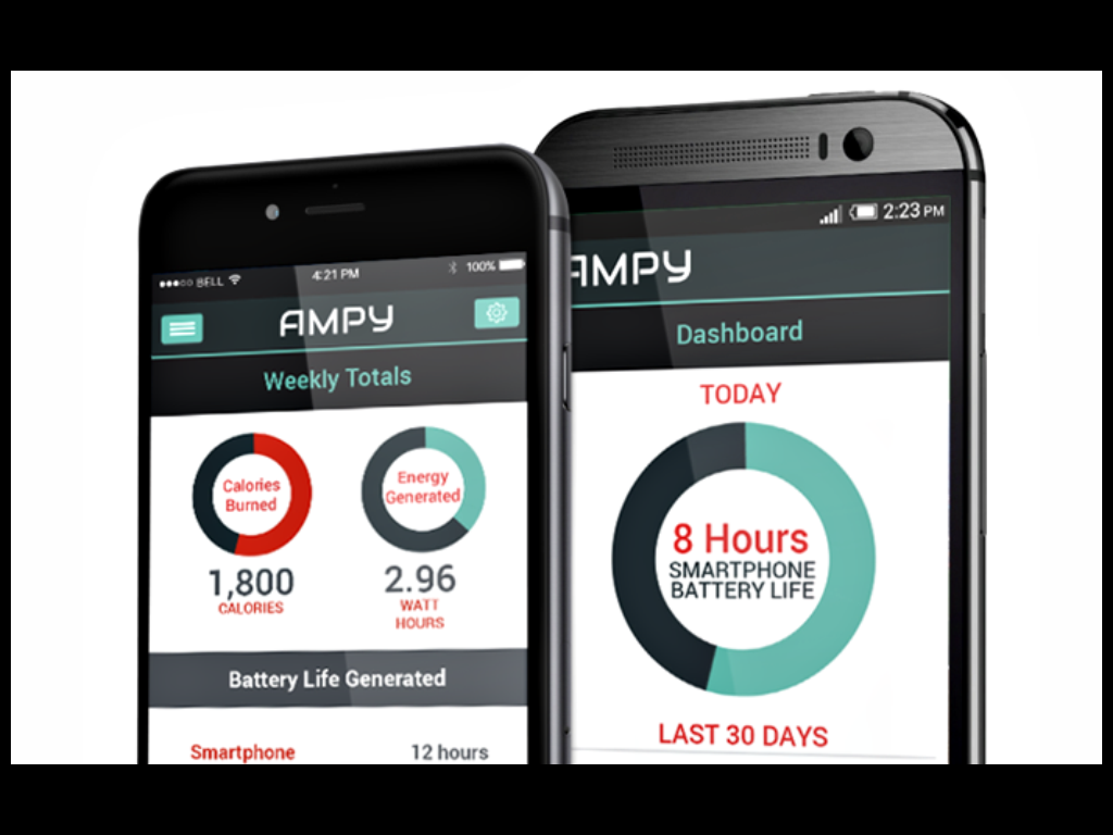 AMPY cuenta con una aplicación para conocer la energía generada y las calorías quemadas.